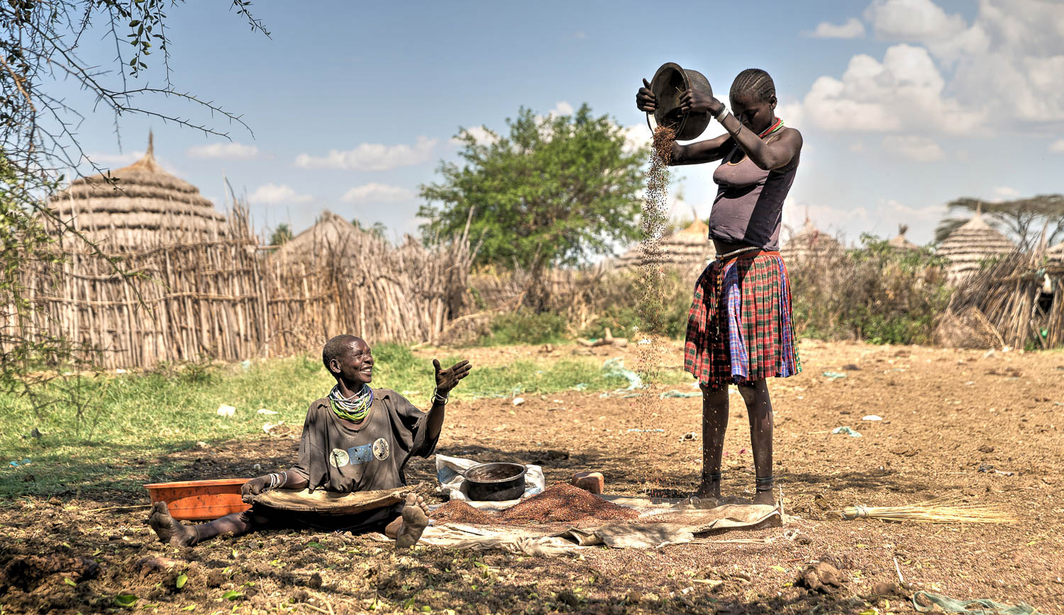Obwohl mittlerweile einige Getreidemühlen durch Hilfsprojekte installiert wurden, wird Getreide vielerorts noch immer in einfacher Handarbeit verarbeitet.