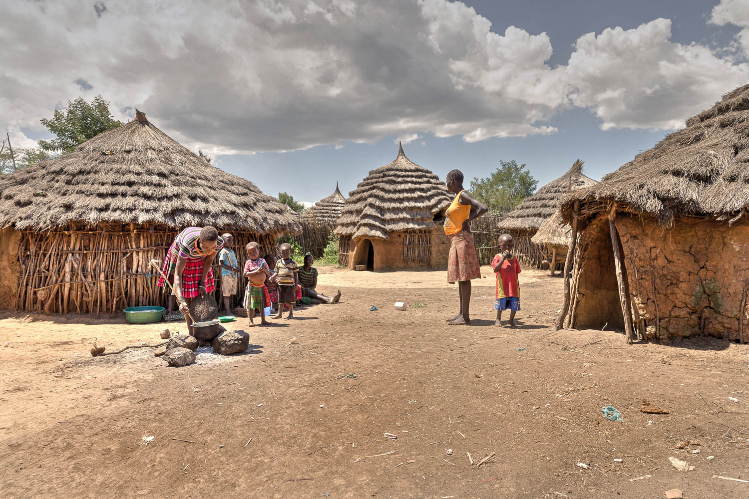 Die Hütten sind auf das Nötigste reduziert. Komfort, wie wir ihn verstehen, gibt es dort nicht. Geschlafen wird auf dünnen Tierhäuten, gekocht mit einfachsten Mitteln, Wasser muss oft von weit entfernten Brunnen geholt werden.