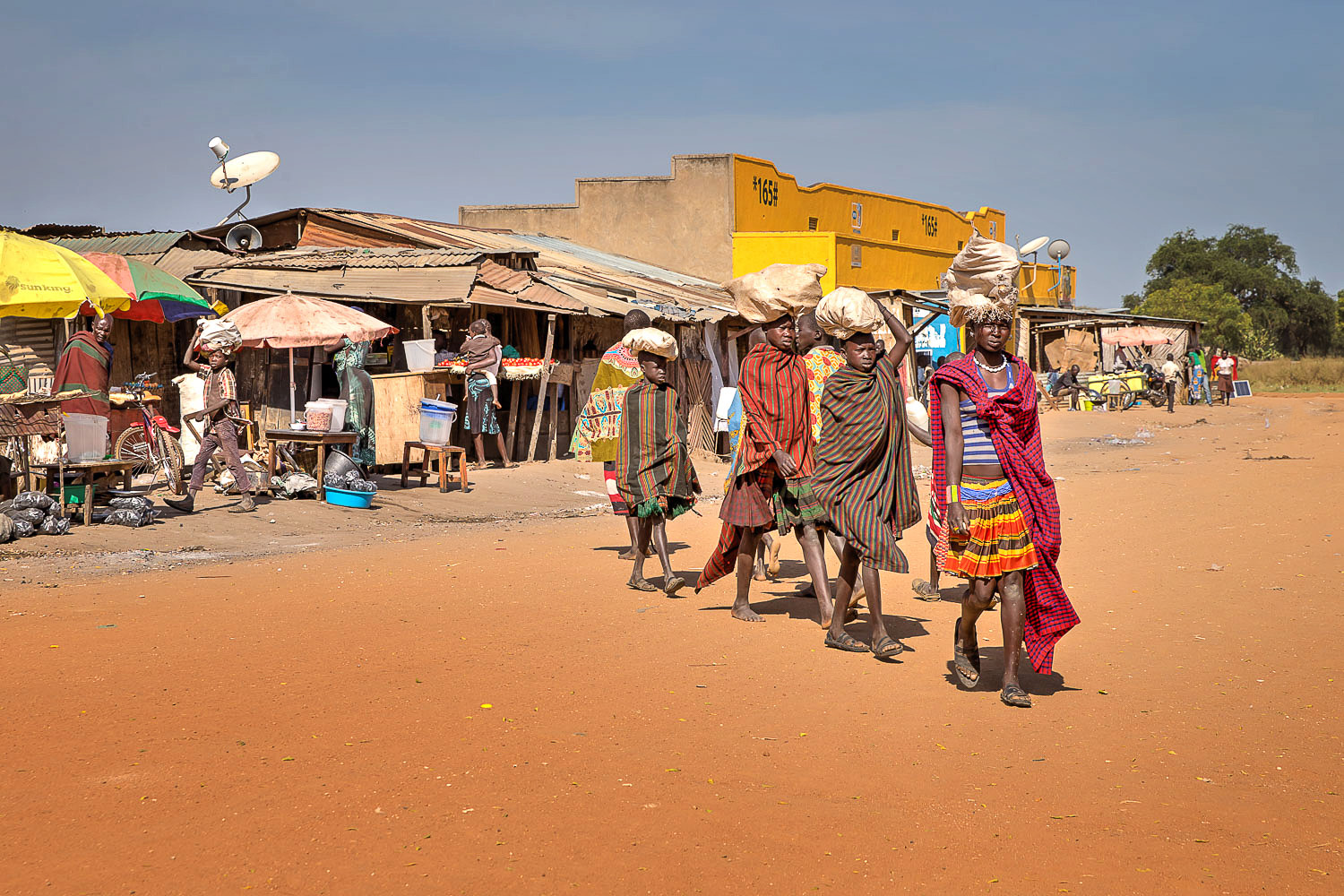 Jeden Montag findet in der Nähe von Moroto ein Markt statt. Dort verdichtet sich das Leben der Region auf engem Raum: Viehhandel, Getreide, Kleidung, Werkstätten, Begegnungen.