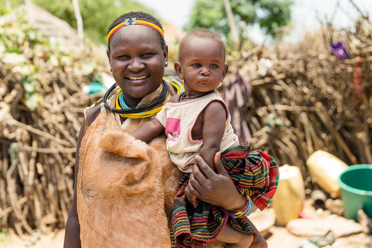 Mutter mit Kind im Kraal der Karamojong in Karamoja, Uganda
