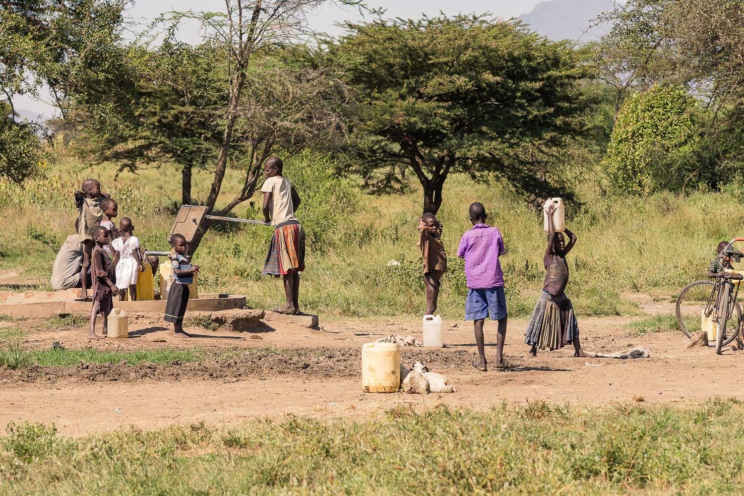 Fließendes Wasser gibt es nicht – Wasserholen gehört zum Alltag vieler Kinder in Karamoja.
