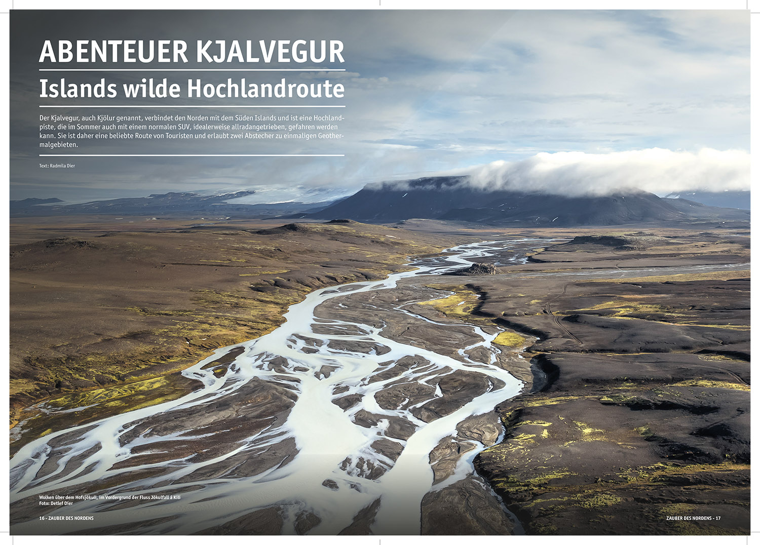 In der Ausgabe 2025-1 von Zauber des Nordens ist der Artikel „Abenteuer Kjalvegur“ erschienen. Darin geht es um die wilde Hochlandroute durch das Herz Islands, um ihre landschaftlichen und historischen Besonderheiten sowie um die eindrucksvollen Stationen entlang der Strecke – von Gullfoss über Kerlingarfjöll bis Hveravellir.